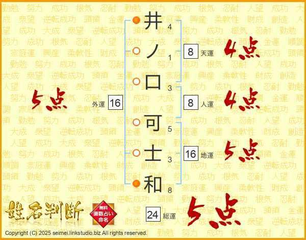 井(4画)ノ(1画)口(3画) 可(5画)士(3画)和(8画)
