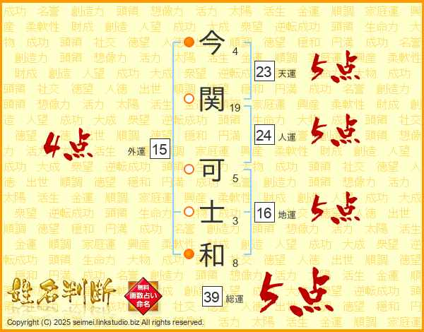 今(4画)関(19画) 可(5画)士(3画)和(8画)