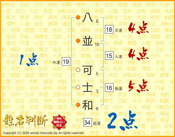 八(8画)並(10画) 可(5画)士(3画)和(8画)
