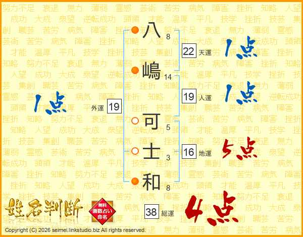 八(8画)嶋(14画) 可(5画)士(3画)和(8画)