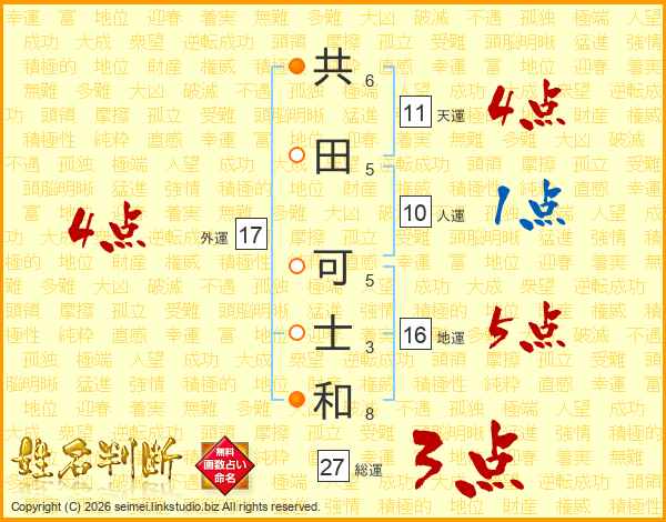 共田可士和さんの総運は27画の3点!