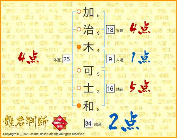 加治木可士和さんの総運は34画の2点!