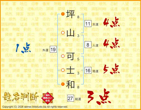 坪(8画)山(3画) 可(5画)士(3画)和(8画)