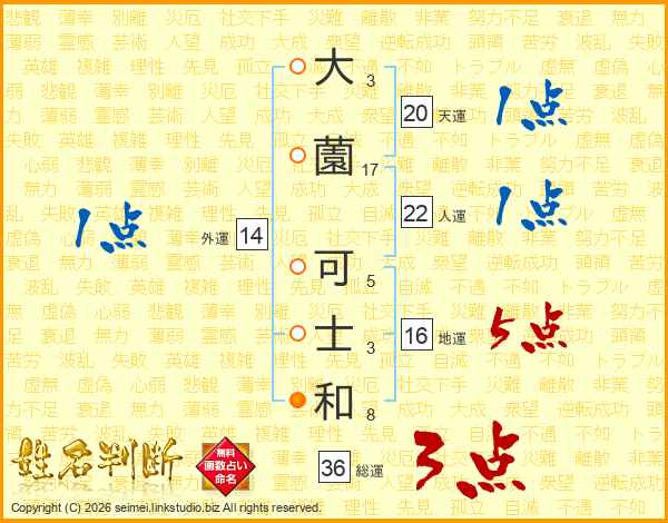 大(3画)薗(17画) 可(5画)士(3画)和(8画)