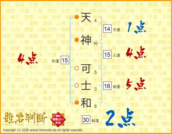 天神可士和さんの天運は14画の1点!