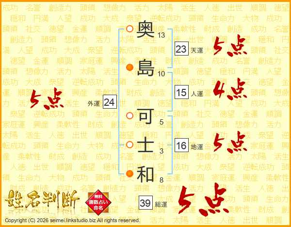 奥(13画)島(10画) 可(5画)士(3画)和(8画)
