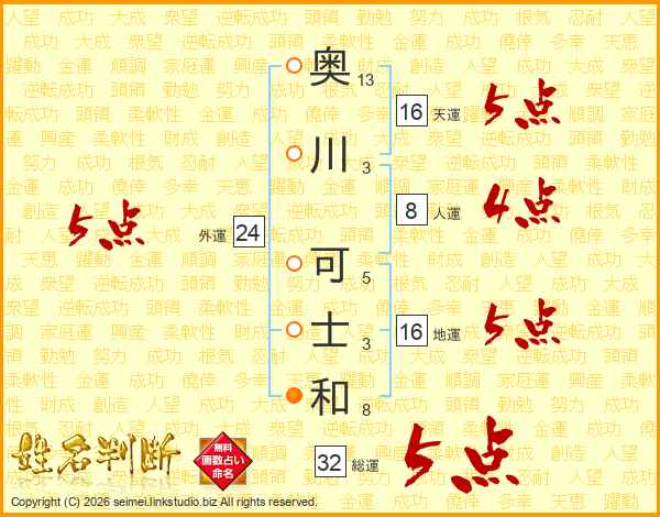 奥川可士和さんの総運は32画の5点!