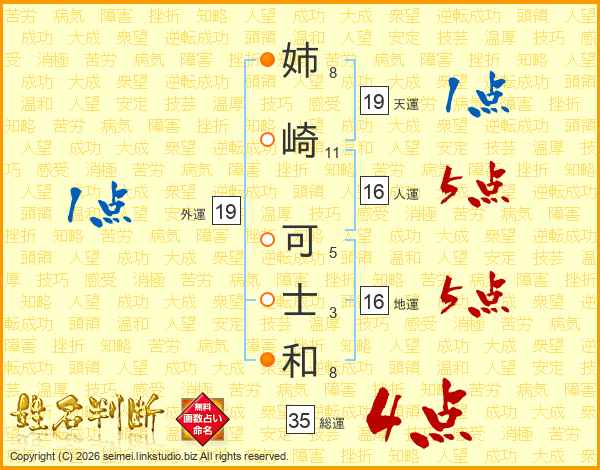 姉(8画)崎(11画) 可(5画)士(3画)和(8画)