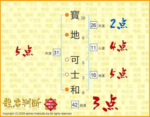 寳地可士和さんの総運は42画の3点!