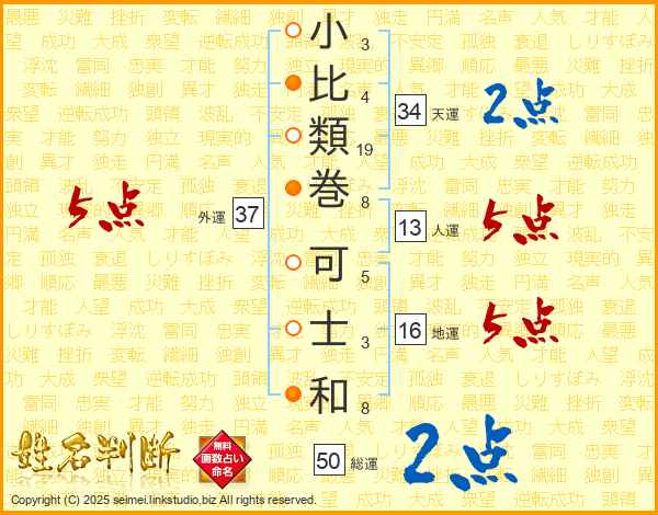 小(3画)比(4画)類(19画)巻(8画) 可(5画)士(3画)和(8画)