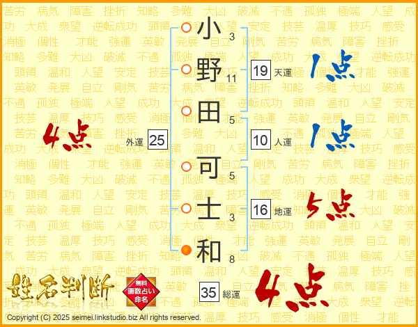 小野田可士和さんの総運は35画の4点!