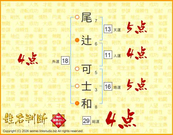 尾(7画)辻(6画) 可(5画)士(3画)和(8画)