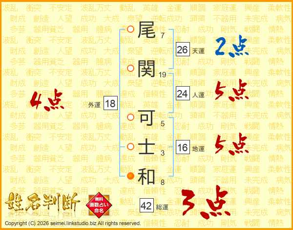 尾関可士和さんの天運は26画の2点!