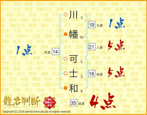 川幡可士和さんの総運は35画の4点!