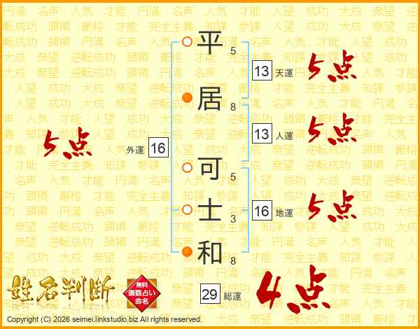 平(5画)居(8画) 可(5画)士(3画)和(8画)