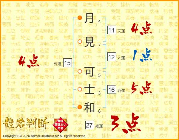 月見可士和さんの外運は15画の4点!