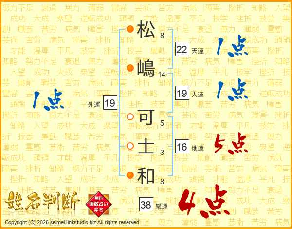 松(8画)嶋(14画) 可(5画)士(3画)和(8画)