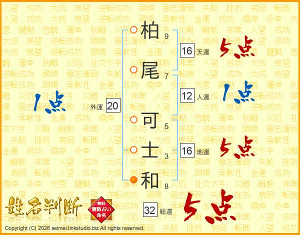柏(9画)尾(7画) 可(5画)士(3画)和(8画)