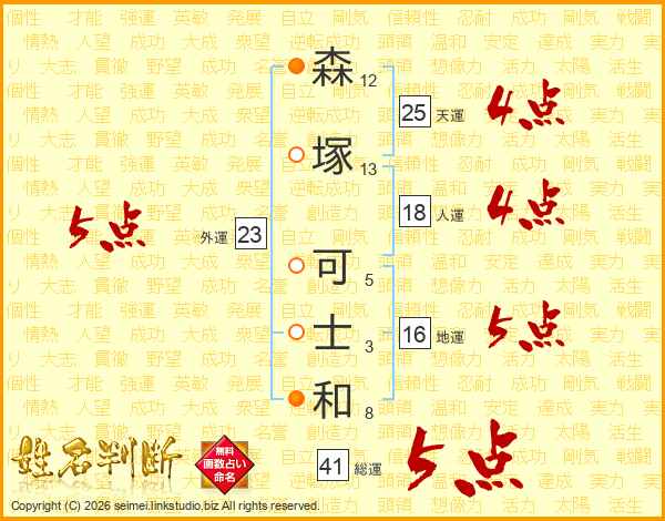森塚可士和さんの総運は41画の5点!