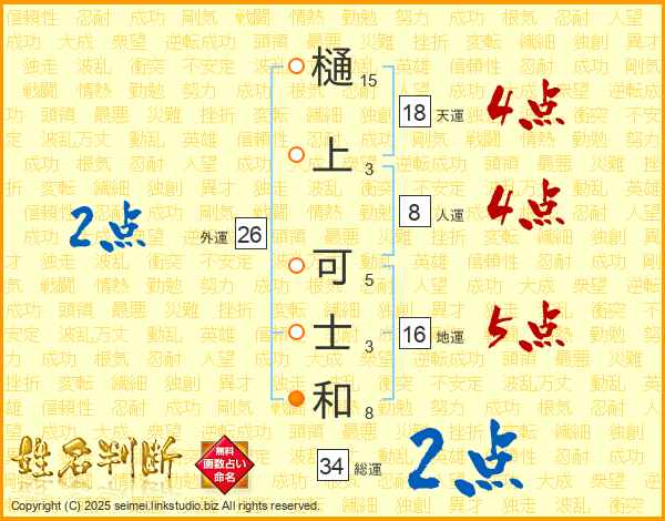 樋上可士和さんの天運は18画の4点!