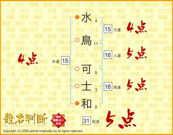 水鳥可士和さんの総運は31画の5点!