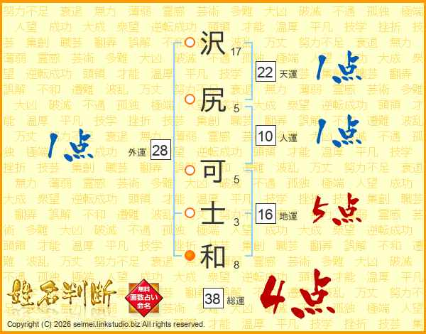 沢(17画)尻(5画) 可(5画)士(3画)和(8画)