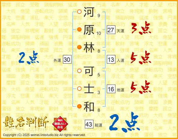 河(9画)原(10画)林(8画) 可(5画)士(3画)和(8画)