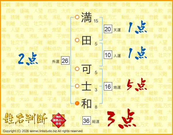 満(15画)田(5画) 可(5画)士(3画)和(8画)