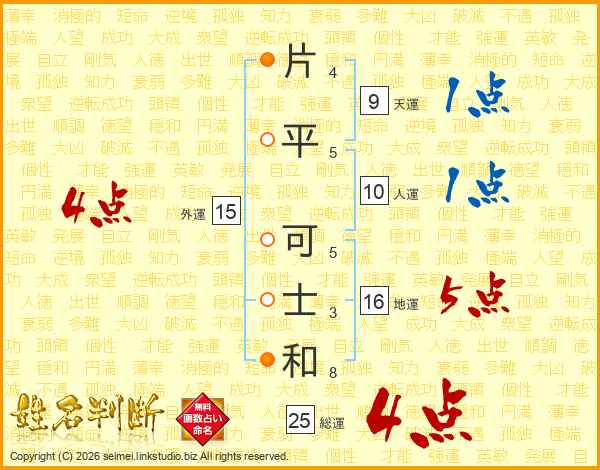 片平可士和さんの総運は25画の4点!