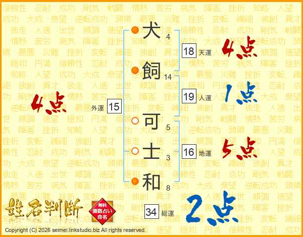 犬飼可士和さんの天運は18画の4点!