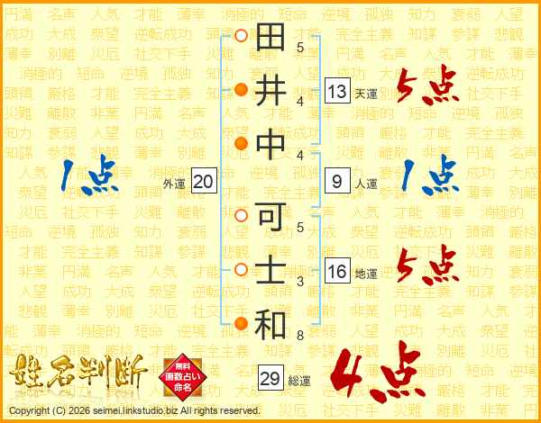田井中可士和さんの総運は29画の4点!