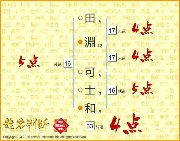 田淵可士和さんの総運は33画の4点!