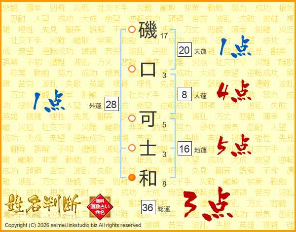 磯(17画)口(3画) 可(5画)士(3画)和(8画)
