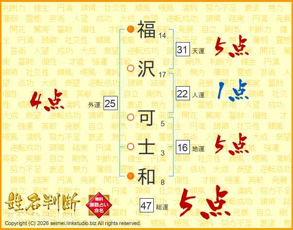 福(14画)沢(17画) 可(5画)士(3画)和(8画)