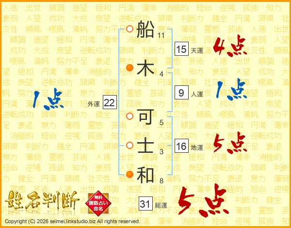 船(11画)木(4画) 可(5画)士(3画)和(8画)
