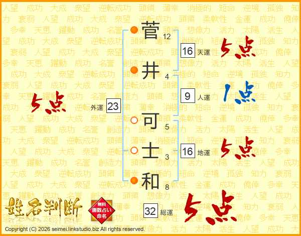 菅井可士和さんの総運は32画の5点!