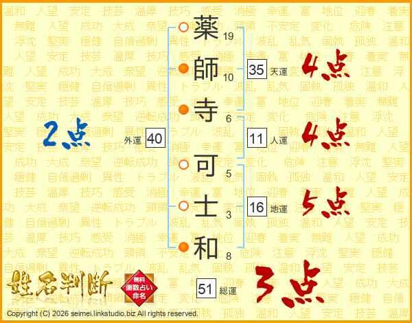薬師寺可士和さんの総運は51画の3点!