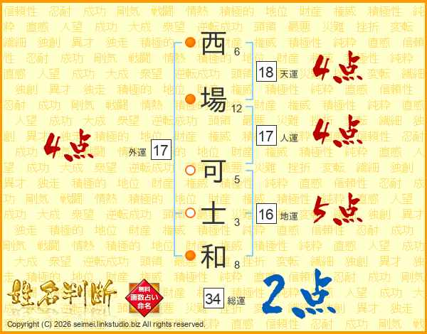 西場可士和さんの総運は34画の2点!