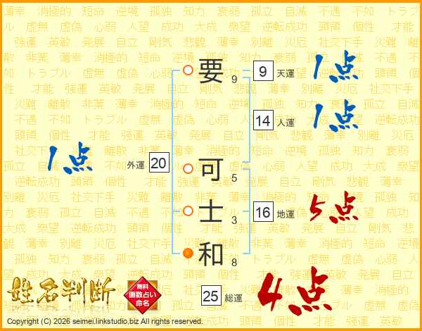 要可士和さんの総運は25画の4点!