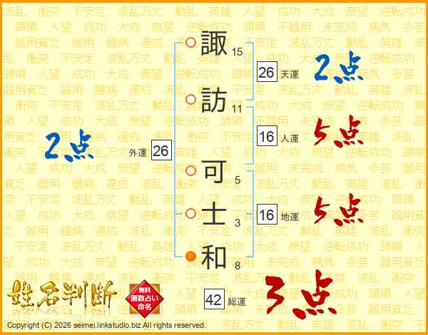 諏(15画)訪(11画) 可(5画)士(3画)和(8画)