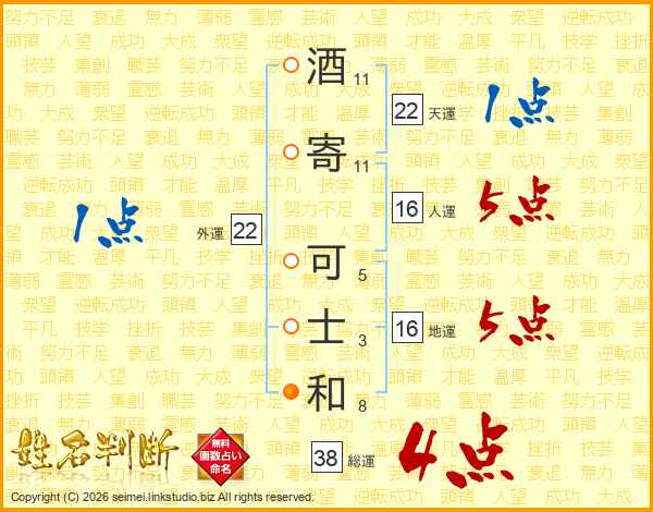 酒寄可士和さんの総運は38画の4点!