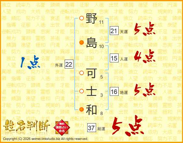 野(11画)島(10画) 可(5画)士(3画)和(8画)