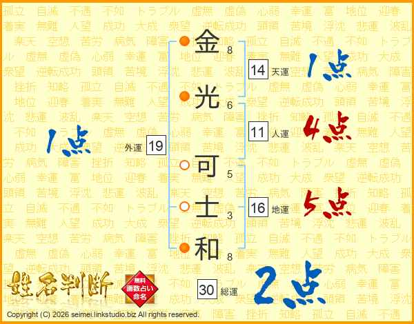 金光可士和さんの総運は30画の2点!