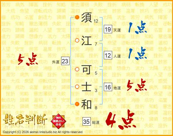 須江可士和さんの総運は35画の4点!