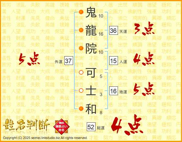 鬼龍院可士和さんの外運は37画の5点!