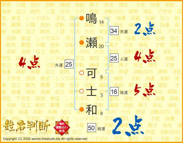 鳴瀬可士和さんの人運は25画の4点!