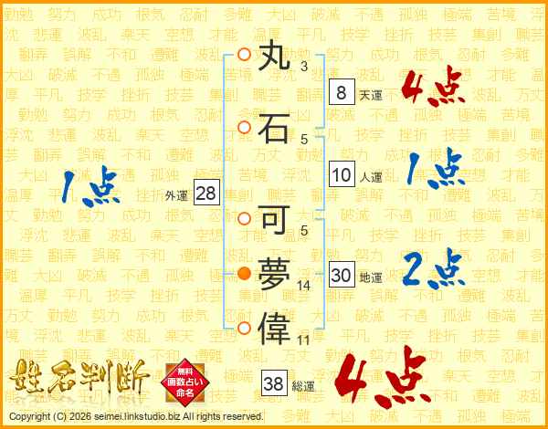丸石可夢偉さんの総運は38画の4点!