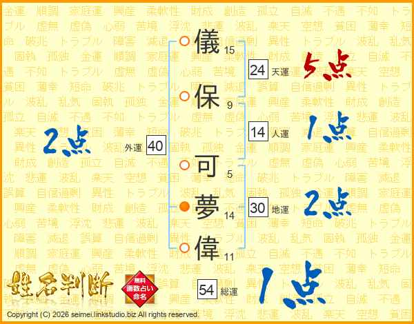 儀保可夢偉さんの総運は54画の1点!