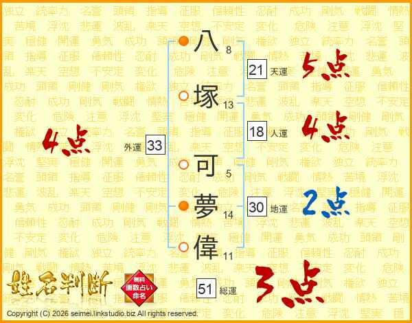 八塚可夢偉さんの外運は33画の4点!
