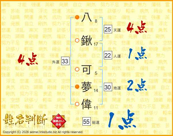 八鍬可夢偉さんの総運は55画の1点!